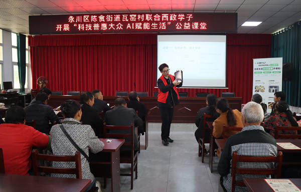 “先点这个绿点点,再把你想问的问题给它说,等两秒就有结果。”新闻传播学院的学生高琦用重庆话耐心讲解。她所在的13人社会实践团队,正在瓦窑村开展“AI普惠公益行动”。