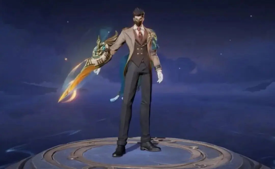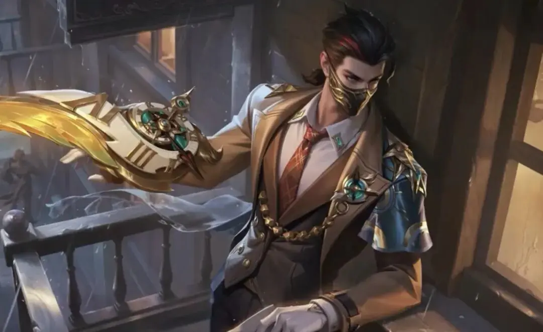 这款皮肤把兰陵王做成了现代侦探的样子,身着利落的黑色侦探风衣,口罩遮着脸,只露出一双锐利的眼眸,腰间别着各种侦探小道具。