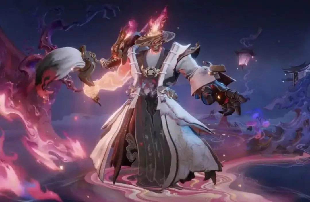 技能特效全是墨韵妖灵风,普攻甩钩子的时候带着红墨流光,二技能勾中敌人,对方头顶会冒古朴的妖灵符文,压迫感直接拉满,大招一开召唤出巨大的墨红妖灵漩涡,吸住敌人的瞬间墨纹闪个不停。